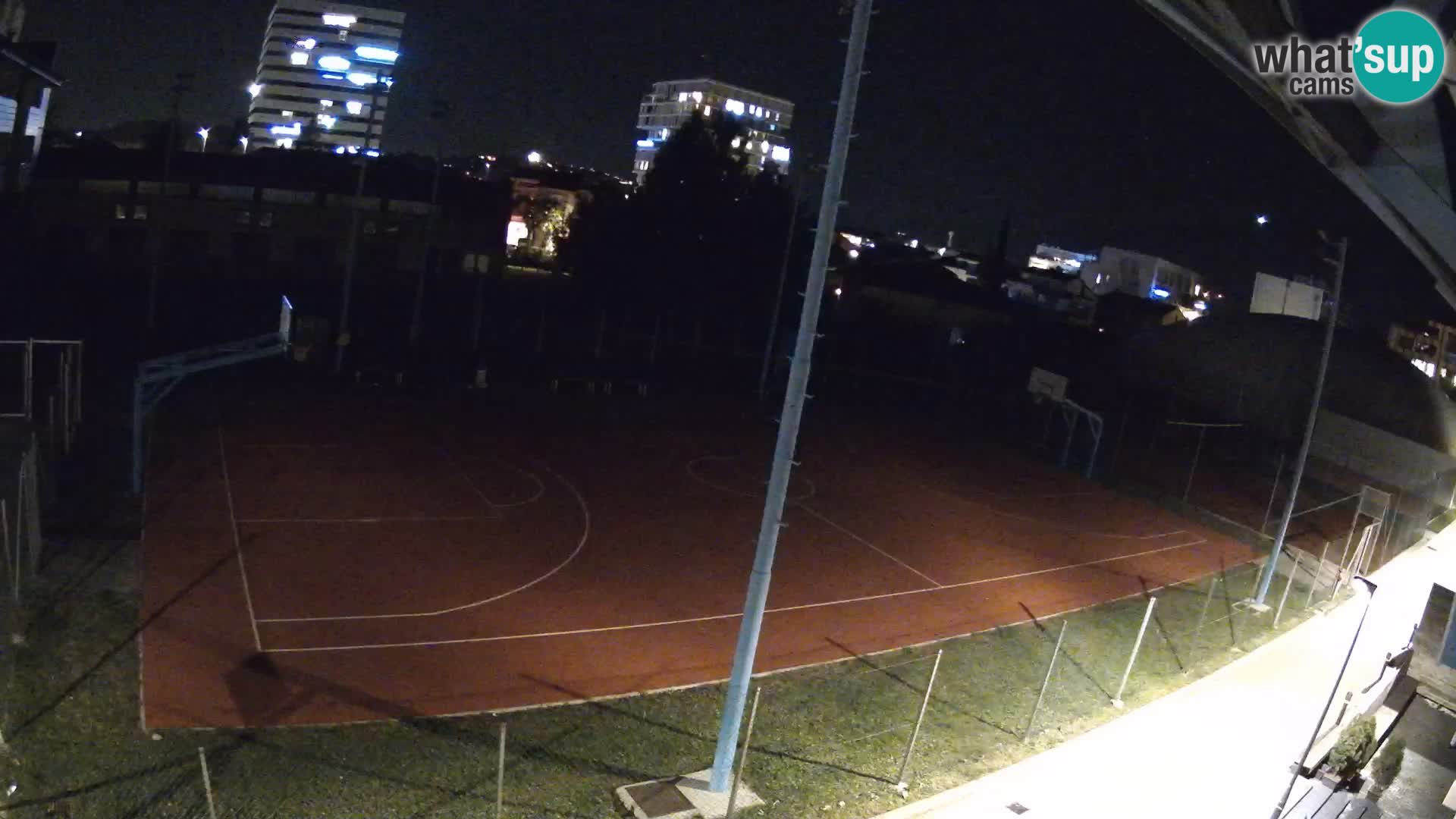 The webcam is located in Aska Borica street, near Heath Care Center Zenica, with a view on street and parking in front of west side of Bilino Polje Stadium. Part of the stadium is also visible.